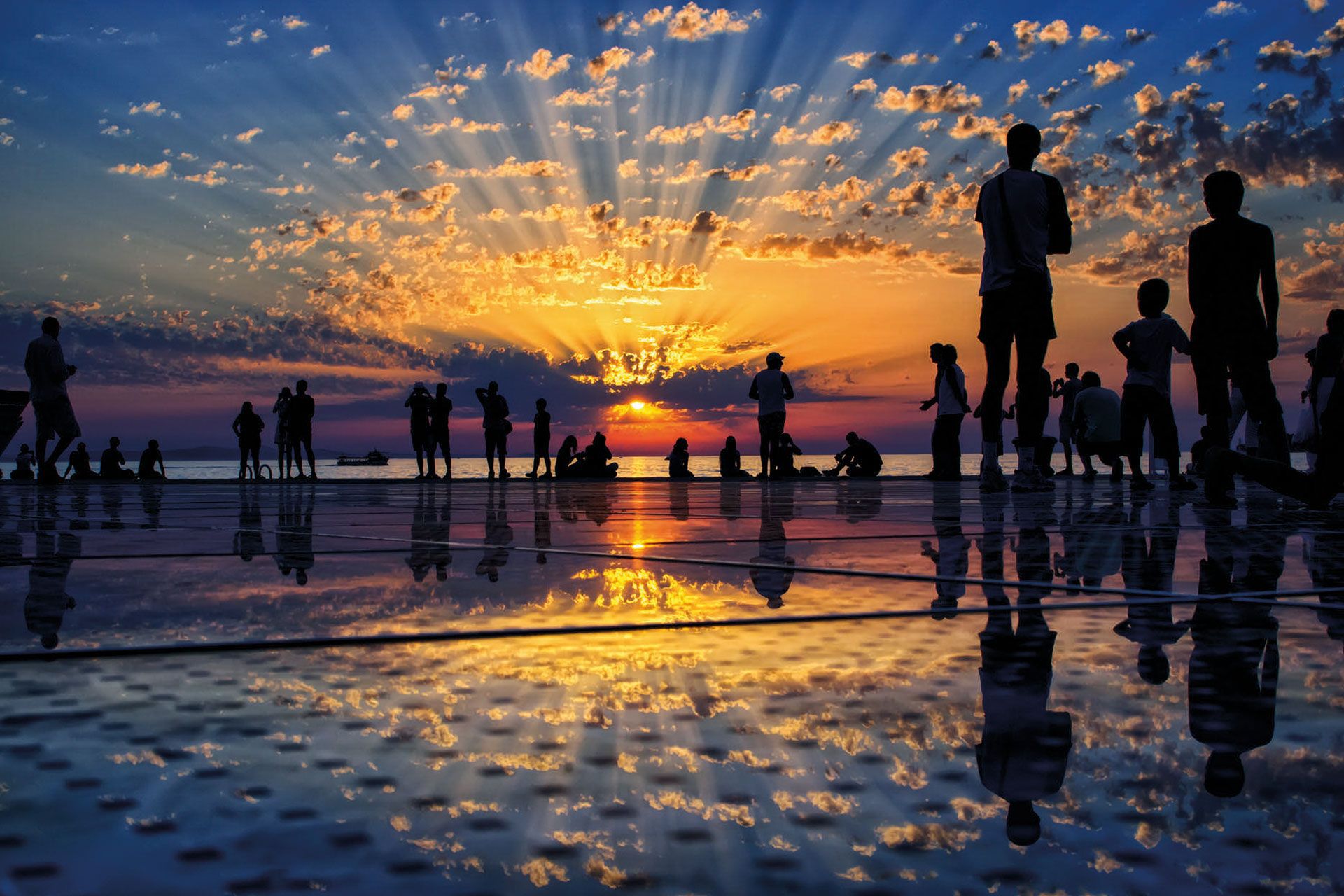 Zadar se posebno ističe jedinstvenim instalacijama arhitekta Nikole Bašića – Morskim orguljama koje stvaraju melodije snagom morskih valova i Pozdravom Suncu, solarnom instalacijom promjera 22 metra koja noću priređuje spektakularnu svjetlosnu predstavu. Alfred Hitchcock je izjavio da upravo ovdje možete doživjeti najljepši zalazak sunca na svijetu.